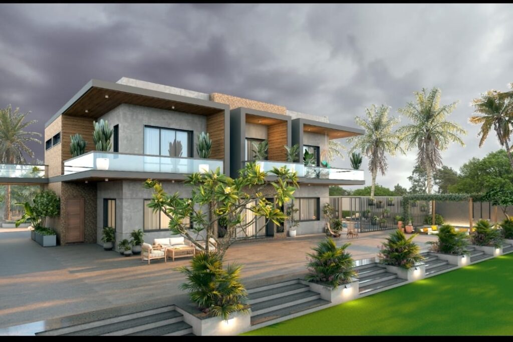 Kheda Farmhouse – 10,250 sq. ft., Juberbhai – A newly constructed farmhouse designed for spacious, comfortable living, blending functionality with quality construction.